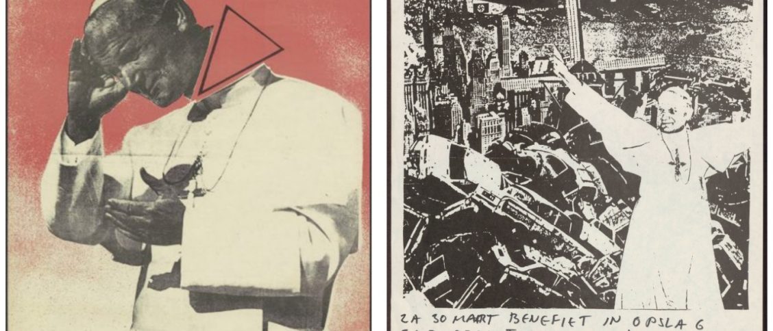 Head photo: left: Poster Landelijke anti-pausdemonstratie / right: Poster Komitee anti-pausbezoek